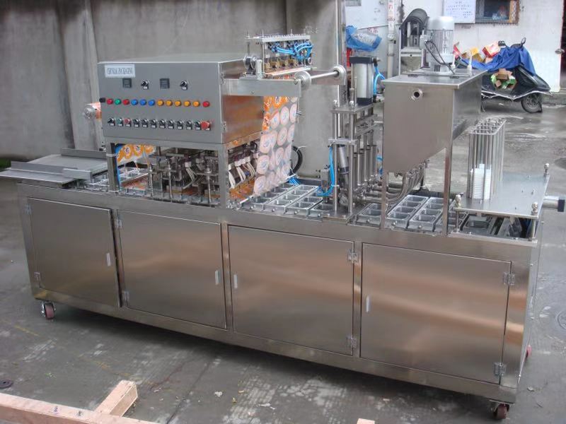 2、 采用氣電、機械一體設(shè)計,傳動平穩(wěn),從容器的供給、充填、封口、切邊、制品的輸出、廢料收卷等完全自動化,以節(jié)約人力,降低成本。